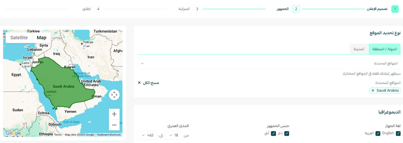 ثم حدد الخصائص الديمغرافية للجمهور المستهدف.