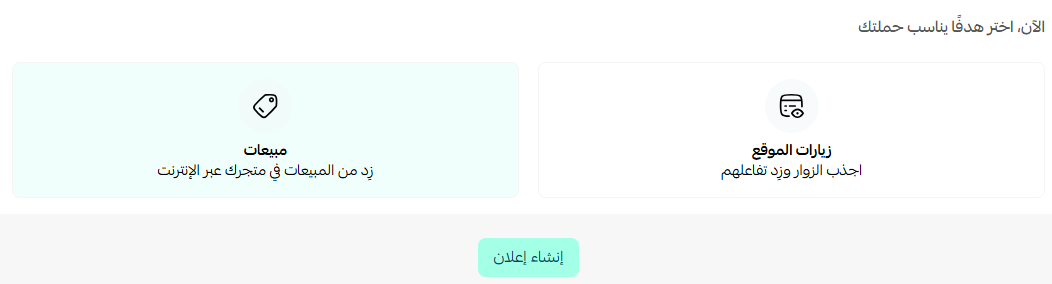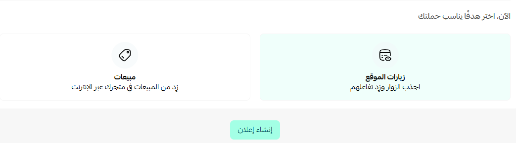 4. حدد هدفاً يناسب الحملة، واضغط (إنشاء إعلان).