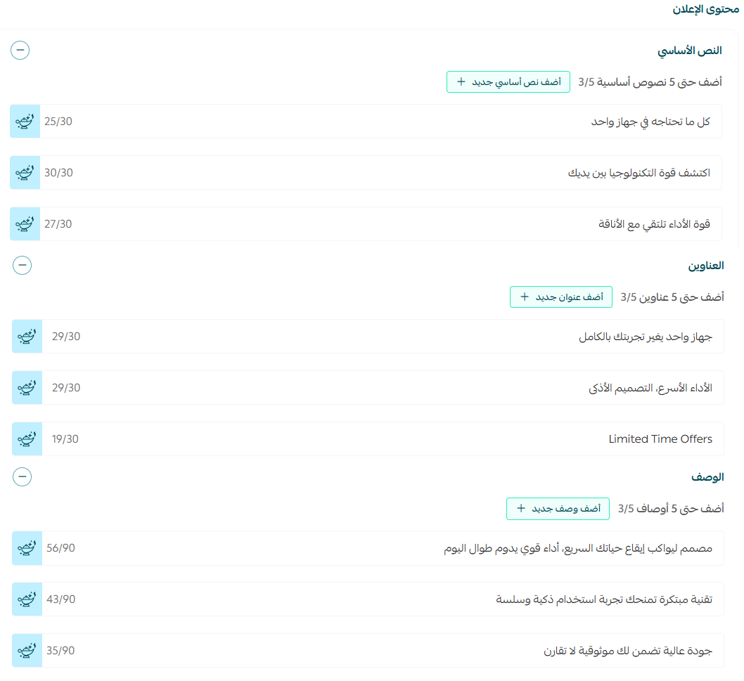 يمكنك إضافة محتوى إعلانك من نصوص، عناوين، وأوصاف بكل سهولة:
