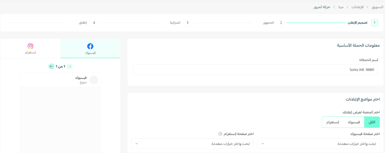3. اختر منصة ميتا لإنشاء حملتك الإعلانية.