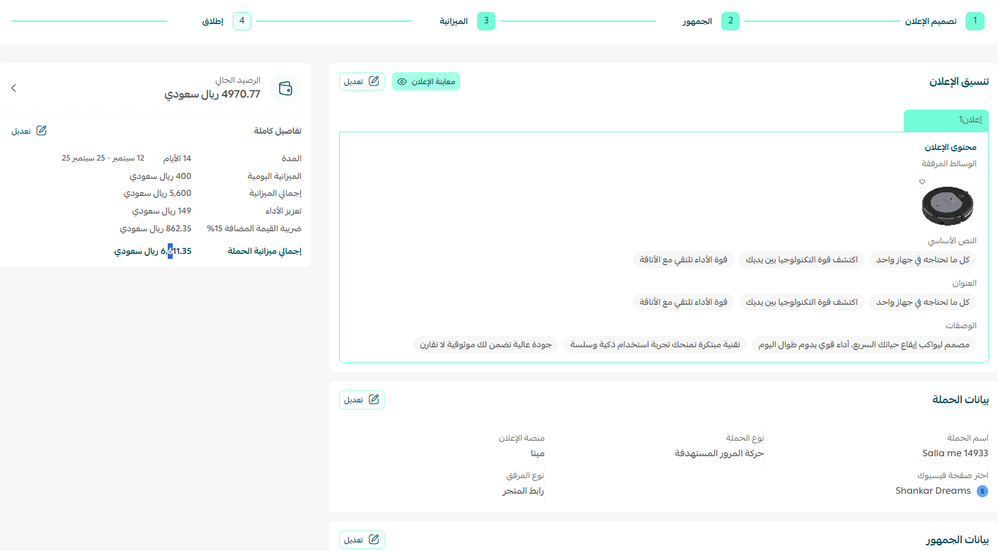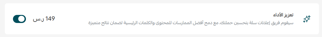 وفيما إذا كنت ترغب بأن يقوم فريق إعلانات سلة بتحسين حملتك، مع دمج أفضل الممارسات للمحتوى والكلمات الرئيسية لضمان نتائج متميزة.