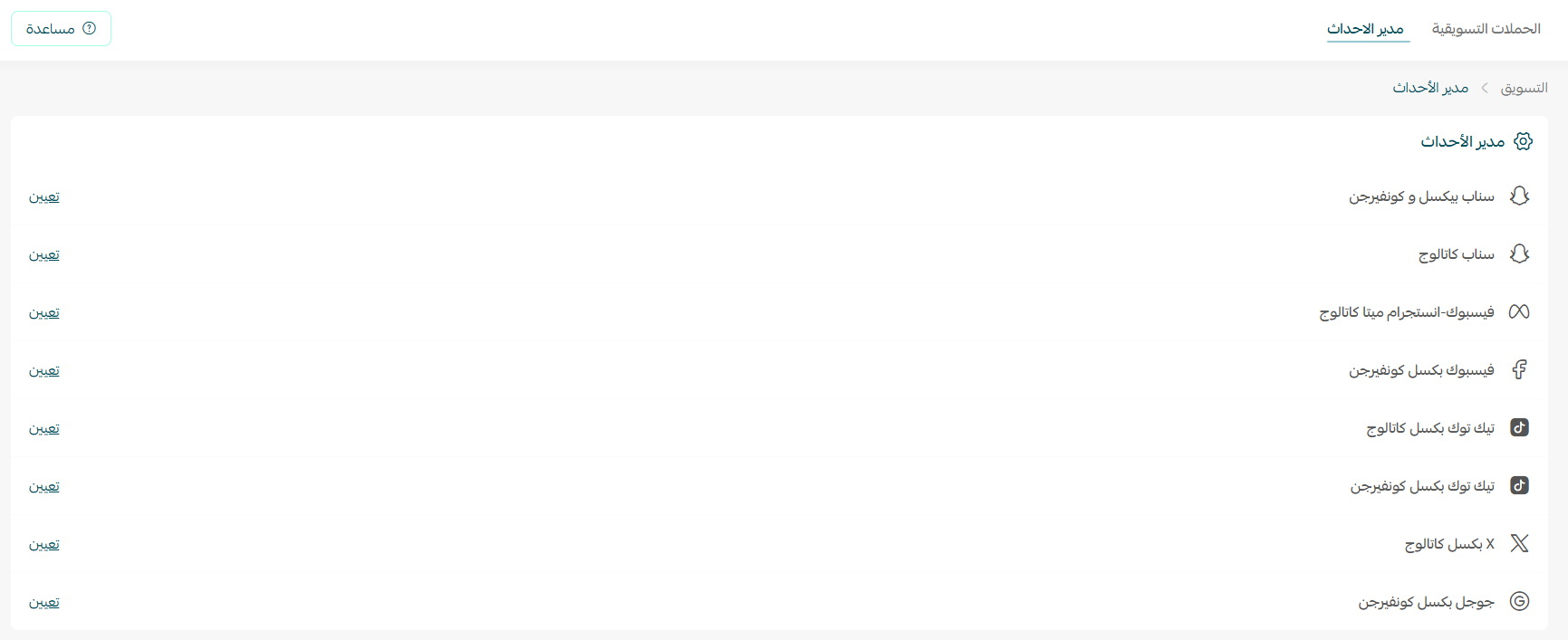 يمكنك التحكم بإعدادات الحملات من خلال تبويب (مدير الاحداث).