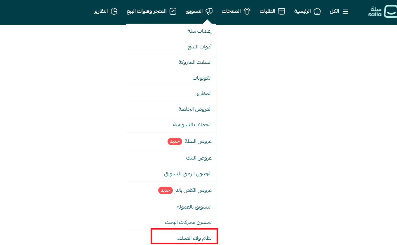 - Go to the Marketing section, then click (Customer Loyalty Program).