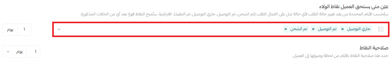 Select the order statuses where loyalty points will be added to the customer account, and how long after the order status changes to a completed status (Shipped, Delivered, Out for Delivery, Completed). By default.
