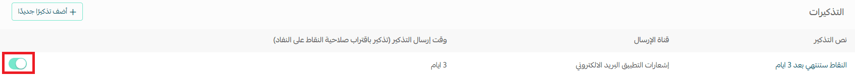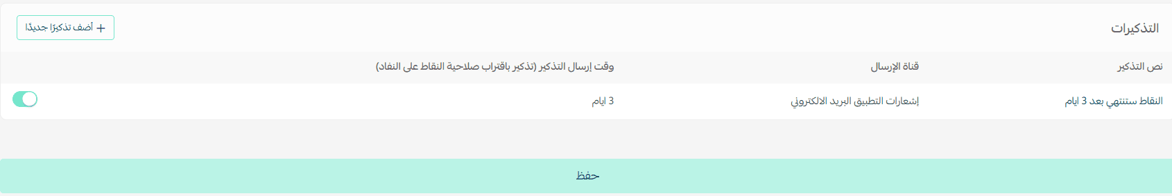 Add a reminder to notify customers when points are about to expire by clicking (Add New Reminder)