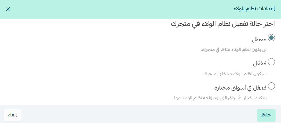 - Disabled: The Customer Loyalty Program will not be active for your store visitors.