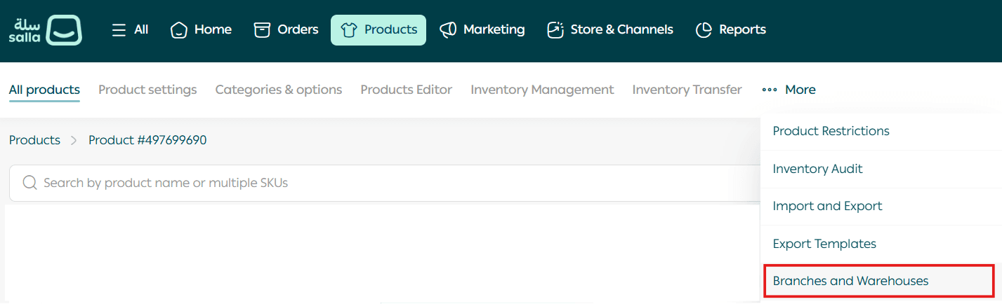 Available for Salla Special plan merchants, allowing full control over product quantities at each branch.