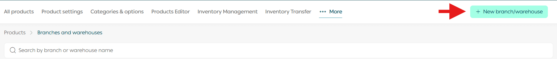 - From the main menu, click Products, then select Branches and Warehouses.