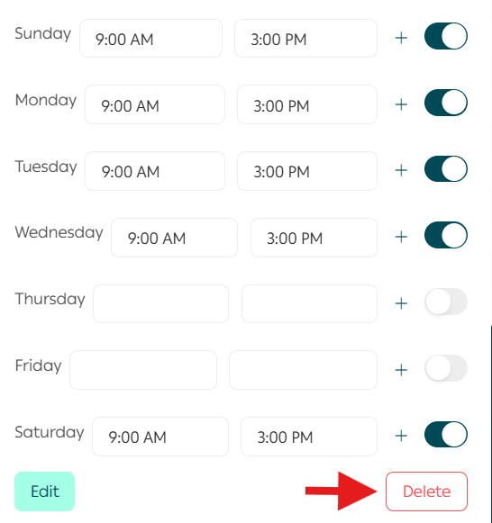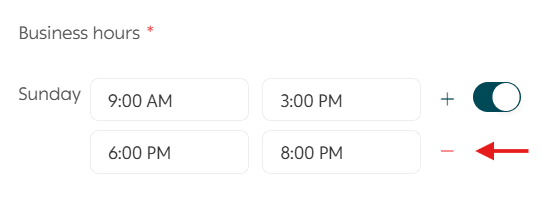 You can also delete a working period by clicking the minus icon next to the period you want to remove.