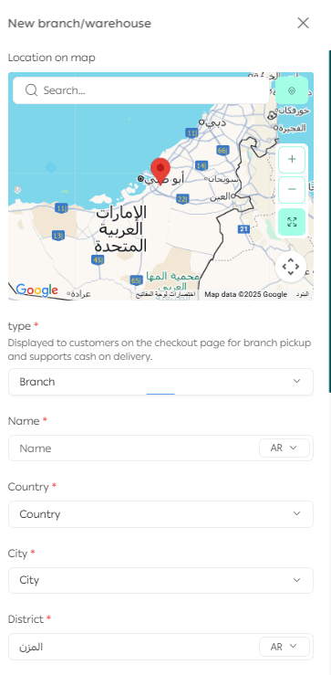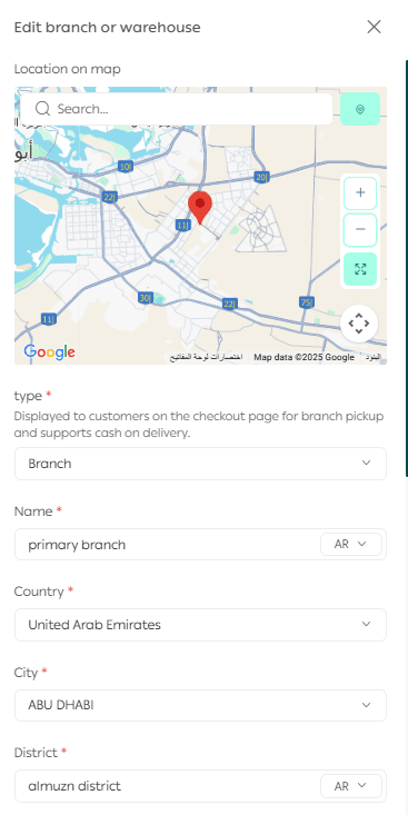 - Select the branch or warehouse location on the map.