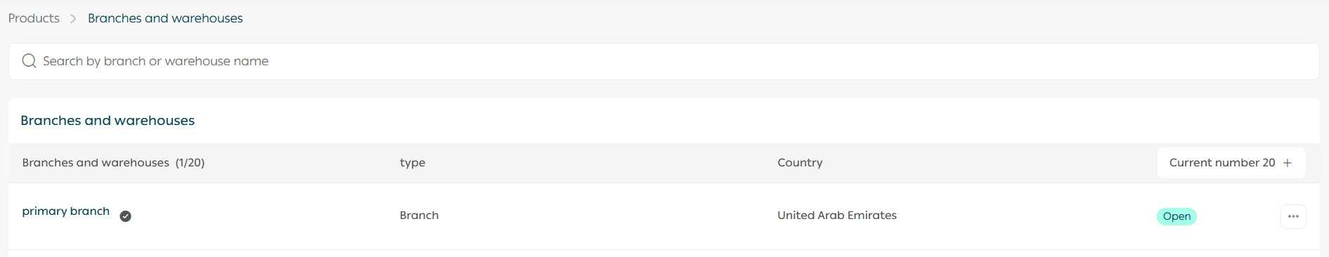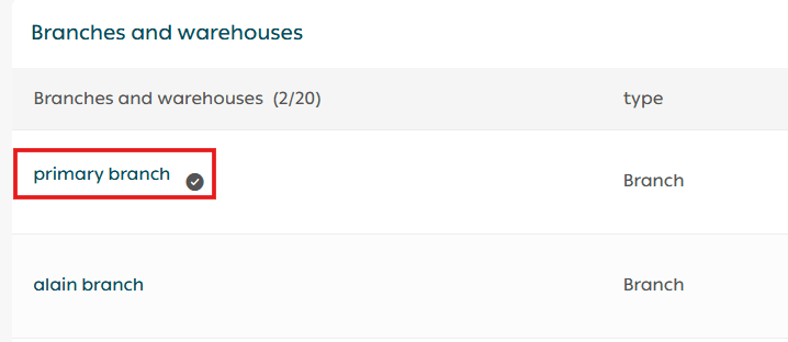Once saved, the new branch or warehouse will appear in the list.