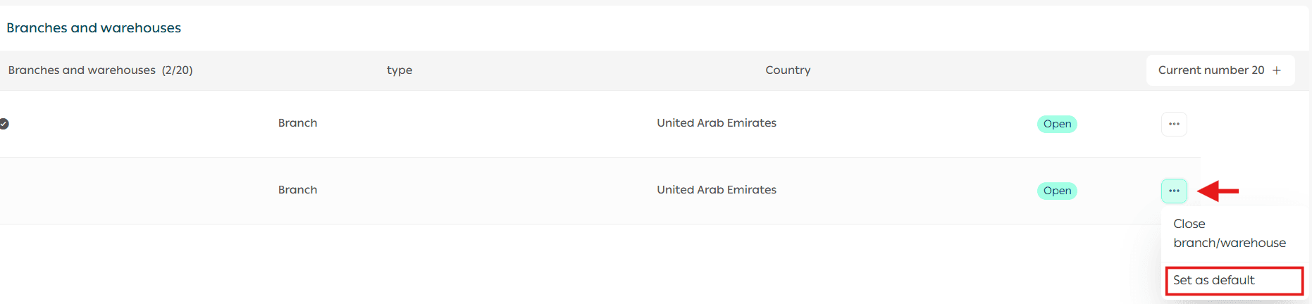 - Setting the branch or warehouse as the default location