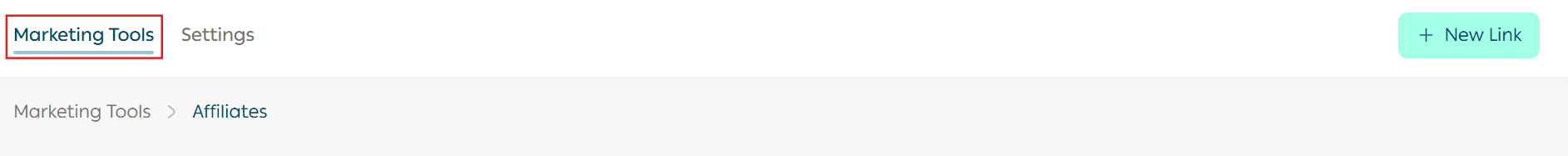 The affiliate marketing page will appear, showing your marketing links, with full options to manage them and create a new link.