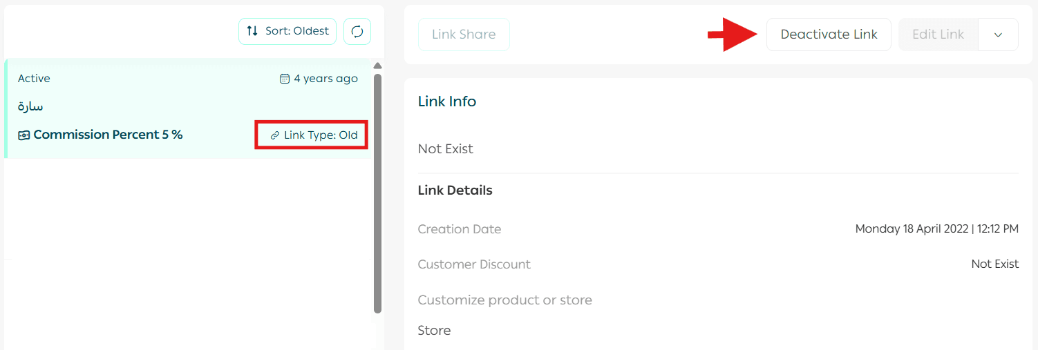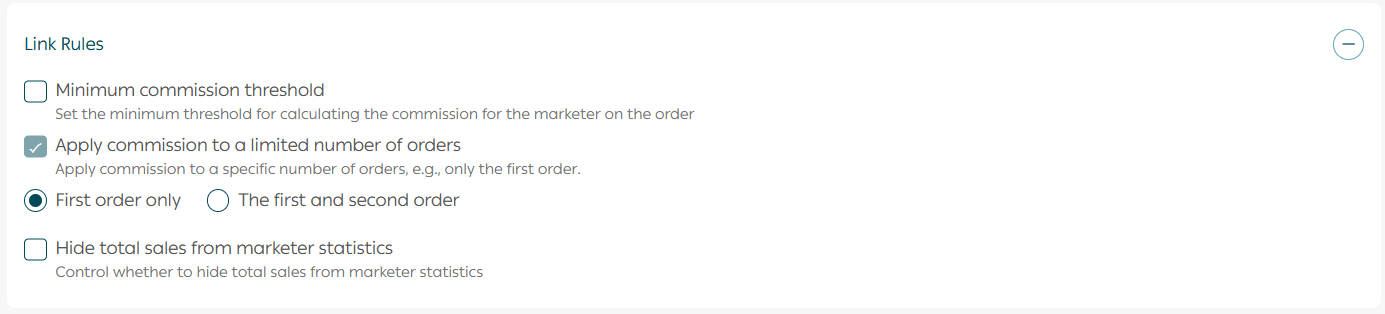 When creating a marketing link, you can define how commission is calculated if the same customer uses the link multiple times.