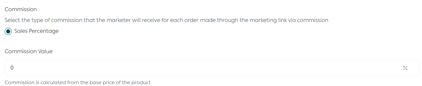 - Set the commission percentage the affiliate earns when customers purchase through the link.