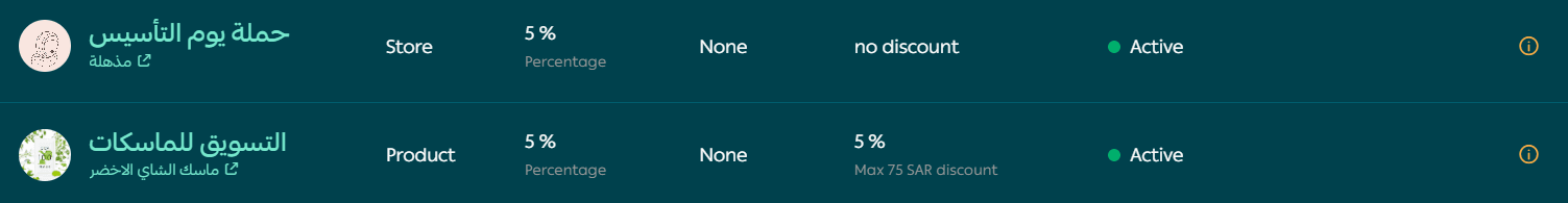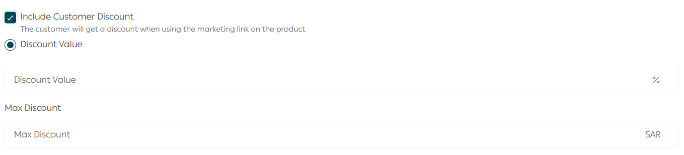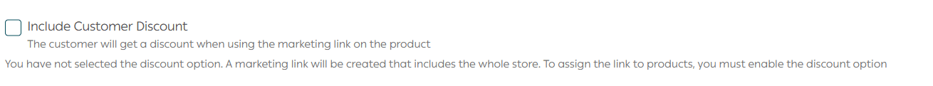 If you want the customer to receive a discount when entering through the marketing link, you must specify: