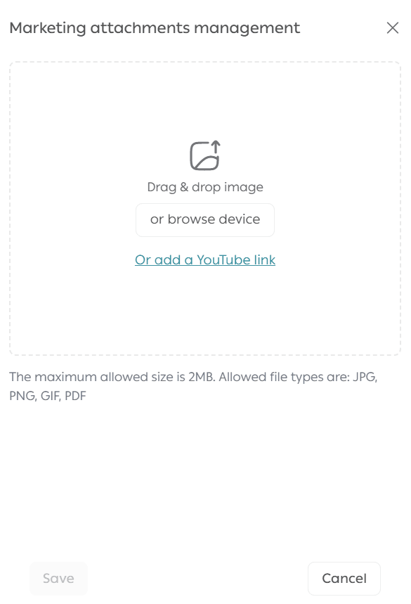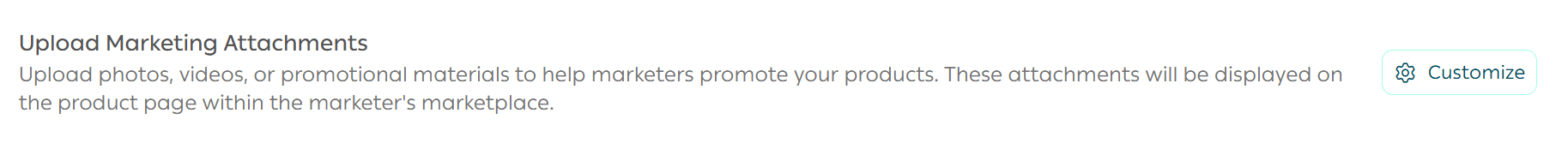 From affiliate marketing settings, click Customize to upload images, videos, or promotional materials to help affiliates market your products.