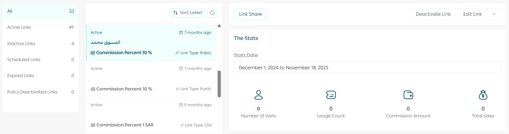 Yes. The merchant dashboard provides detailed information for each link, including: