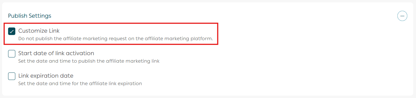 - Do you want the link to be private (shared with a specific affiliate), or published publicly on the affiliate marketing page?