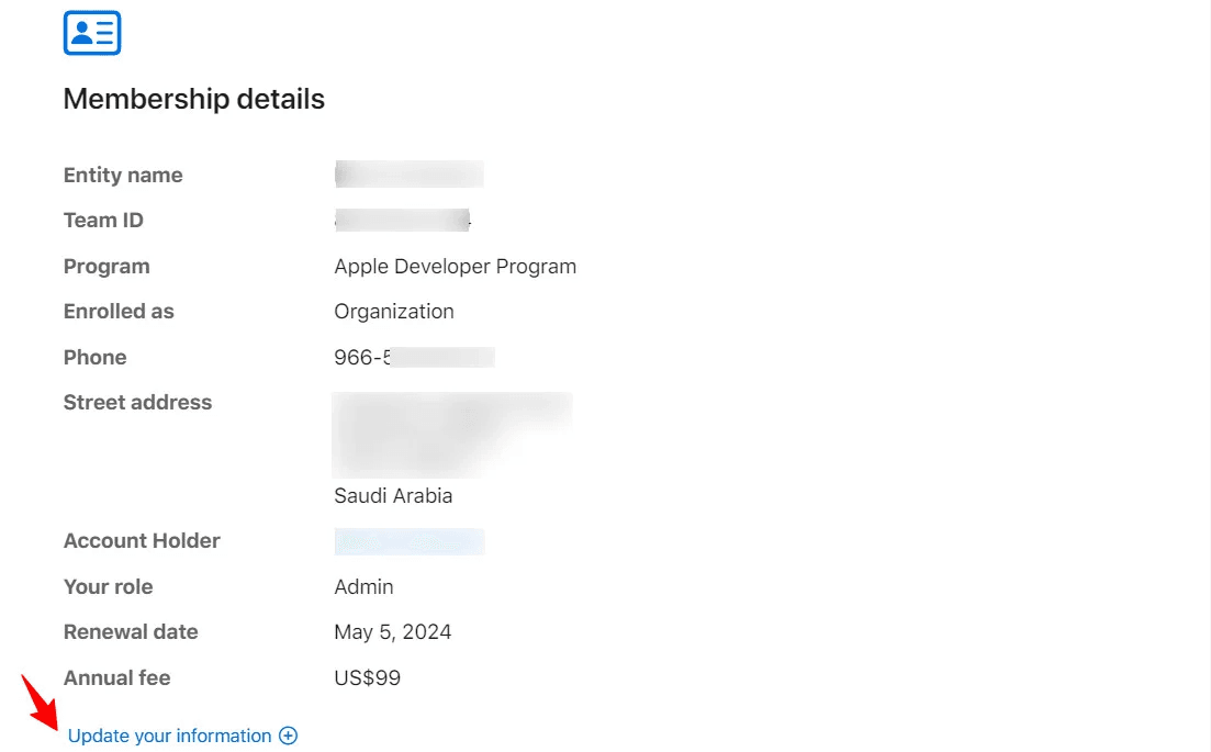 - From the Developer dashboard, open Membership Details