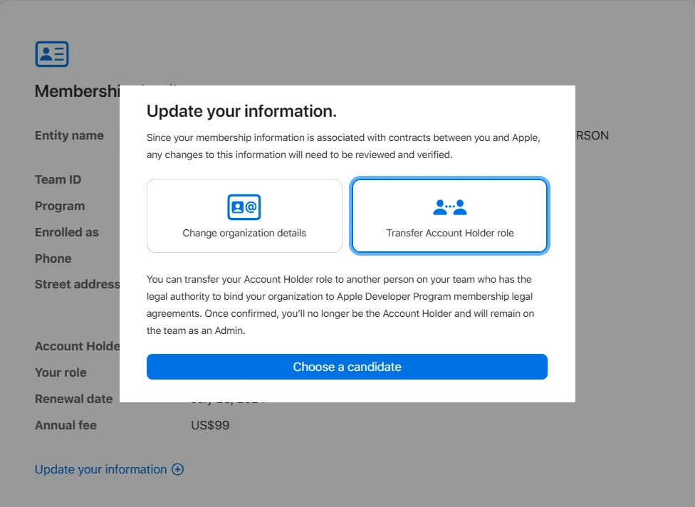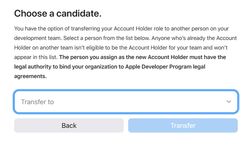🔔 The selected user must have company-level permissions and be eligible to accept Apple agreements.