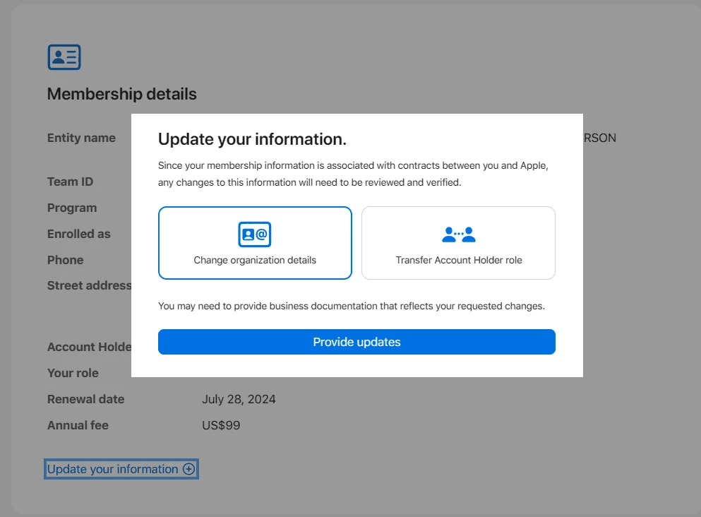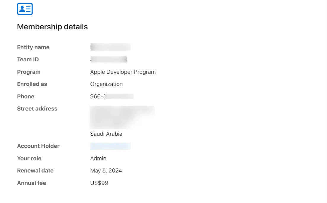 - Entity Name – Legal entity registered with Apple