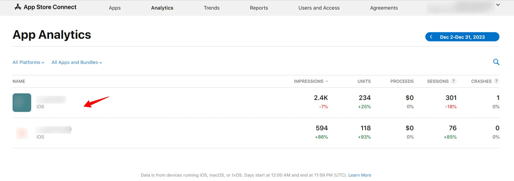 📖 Learn more: Viewing Apple App Analytics