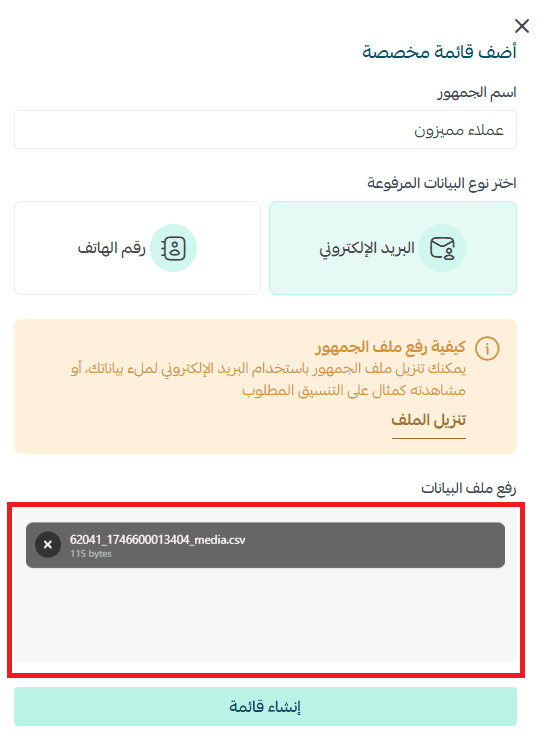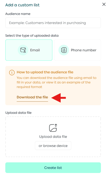 7. Finally, click Create List to add the new audience to Salla Ads.
