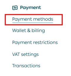 2. Scroll to the bottom of the Payment Methods page.