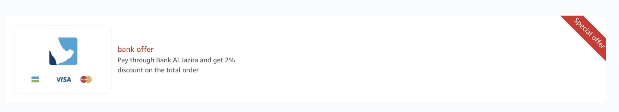 A bank offer is a discount applied automatically when a customer pays using a card issued by a specific bank. Its main purpose is to encourage customers to complete checkout through a bank you choose, by rewarding them with an exclusive discount.
