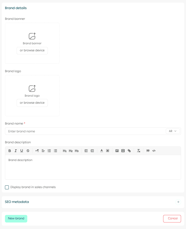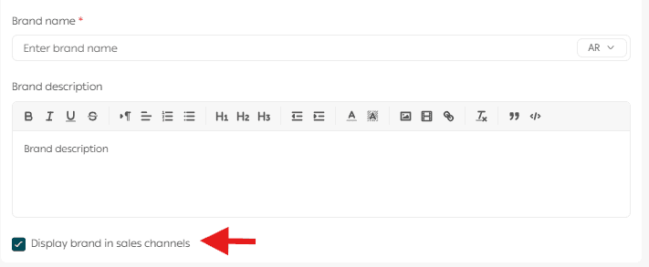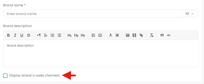 You can disable a brand’s visibility across sales channels if you do not want it to appear in the store.