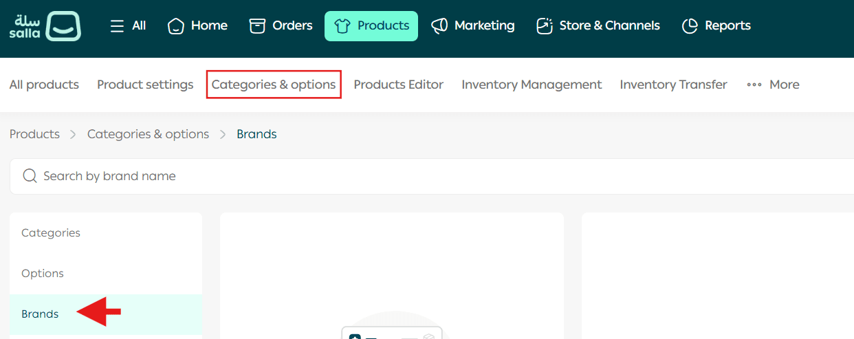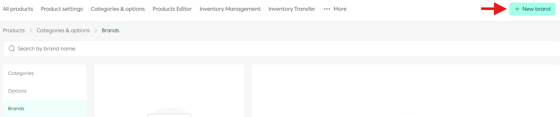 2. From the Products page, open the Manage Categories and Options tab, then click Brands.