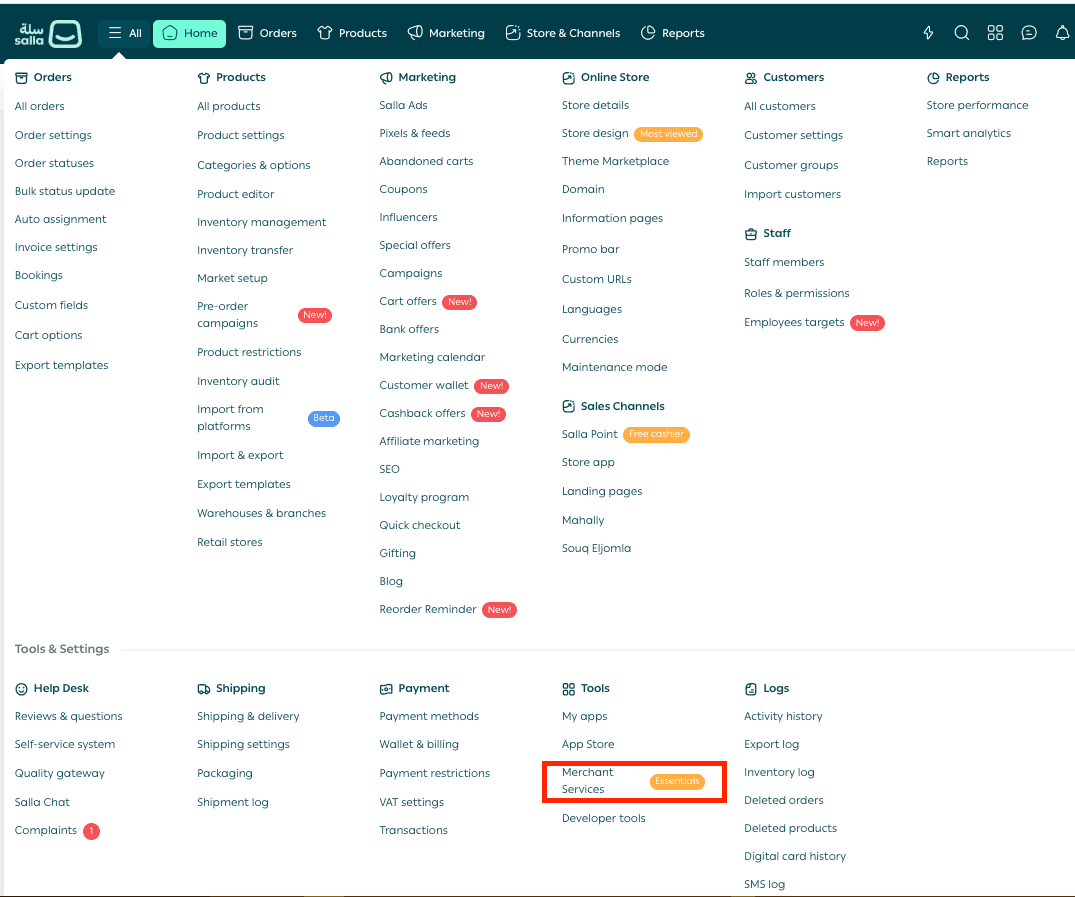 - Under Tools, select Merchant Services.