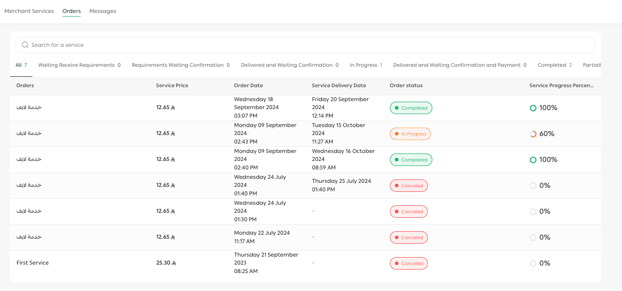 - Messages tab → to review and manage chats with service providers