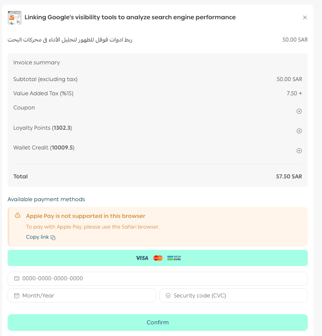 You’ll then be redirected to the checkout page to complete your request successfully.