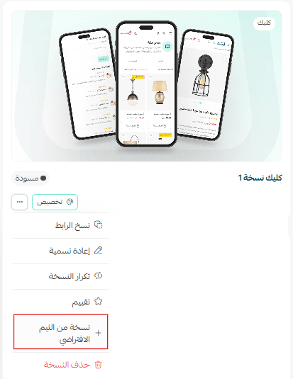 4. After installation, go to Store Design → select the theme → click (+ New Theme Copy from Default)
