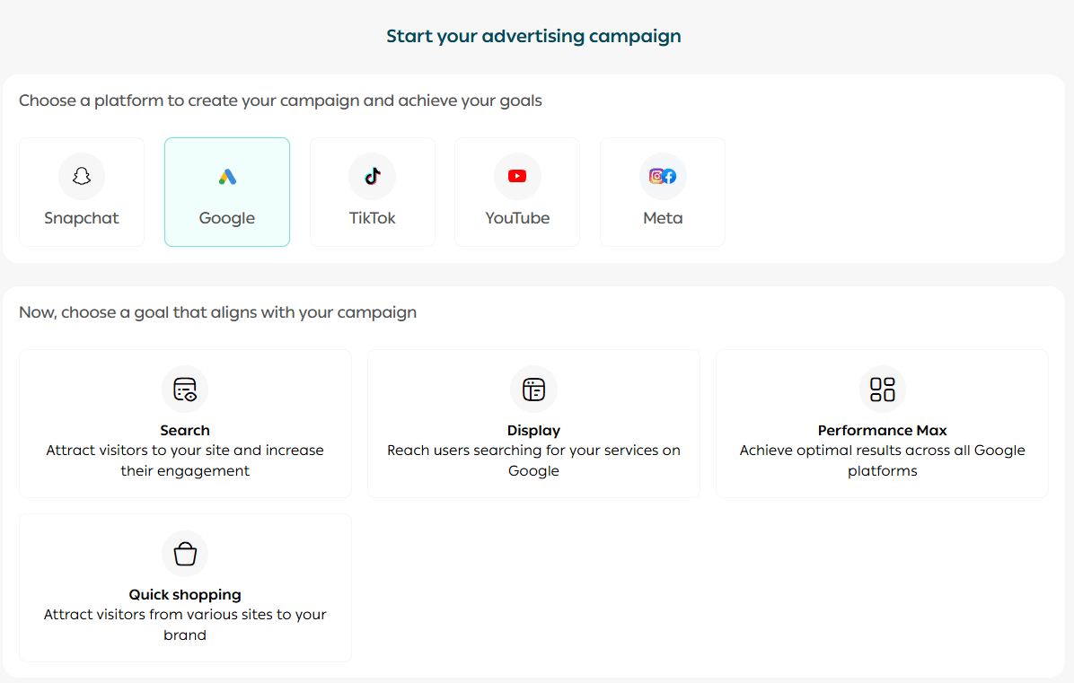 Complete and launch the campaign. You can follow the article Creating a Google Ads Campaign for step-by-step instructions.
