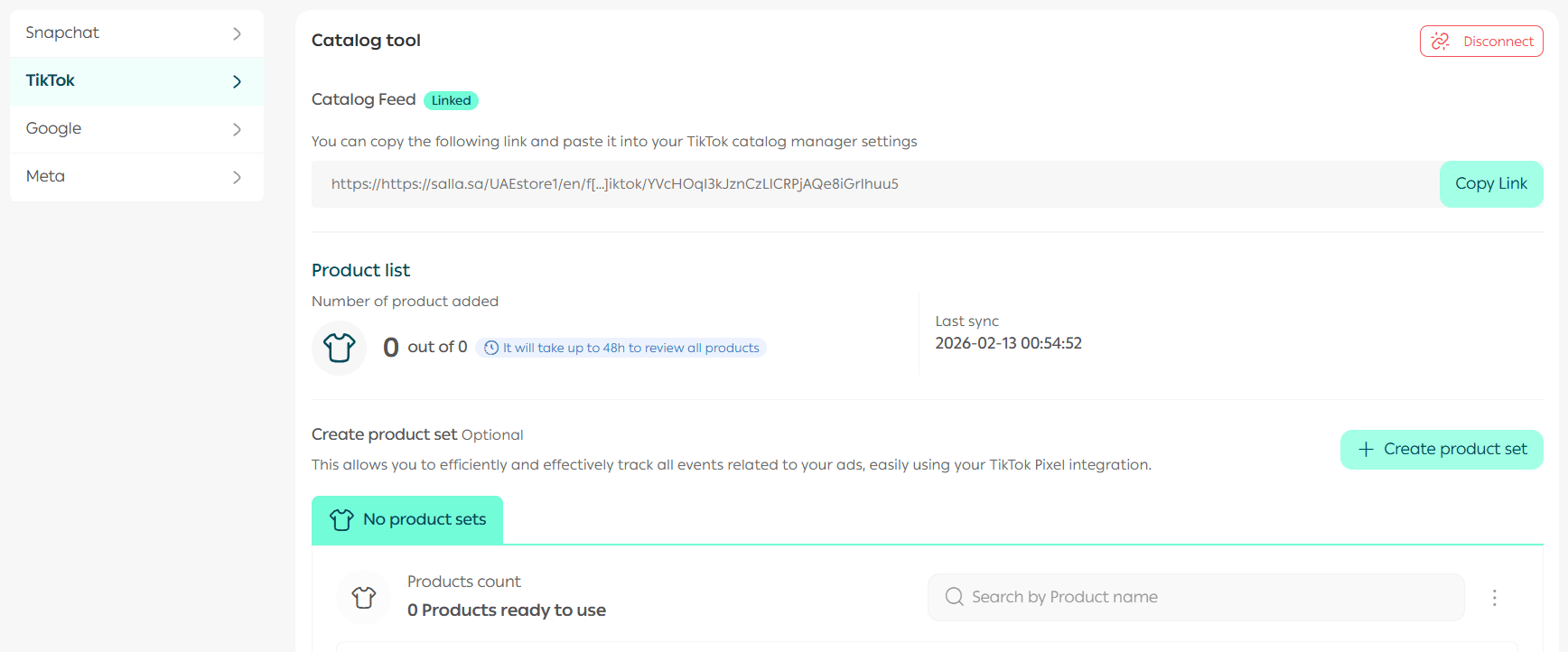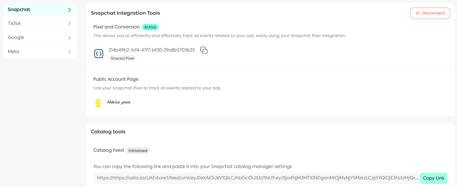 Important note: You must have at least one previous campaign on Salla Ads in order to successfully connect your advertising accounts.