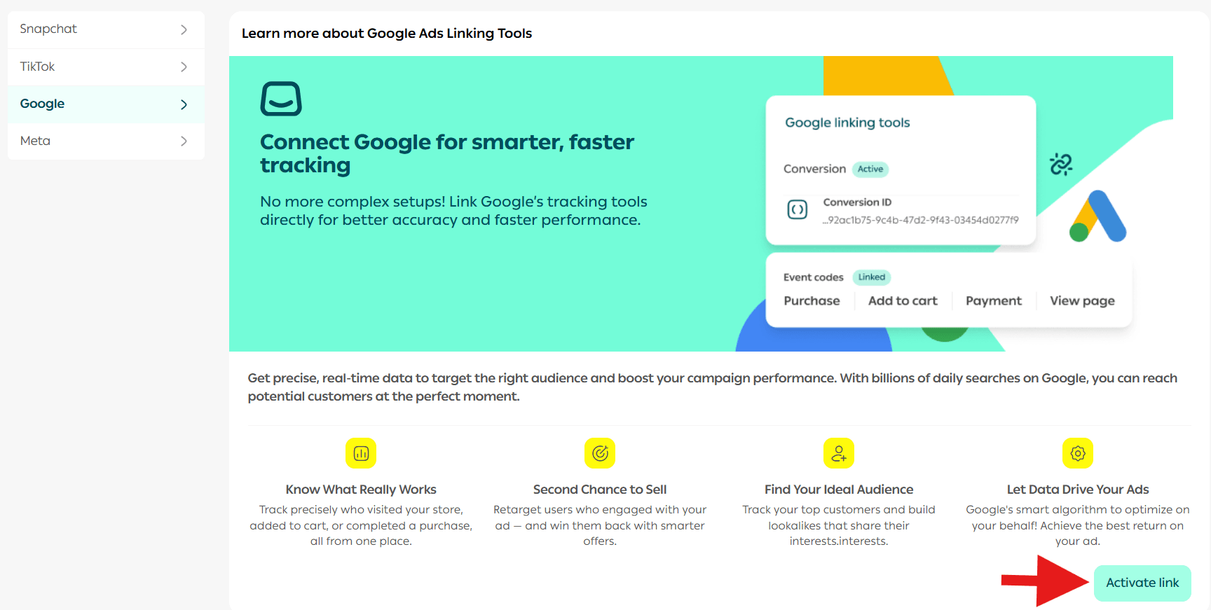 These tools help you collect more accurate audience data and achieve better advertising results using Conversion API and Pixels.