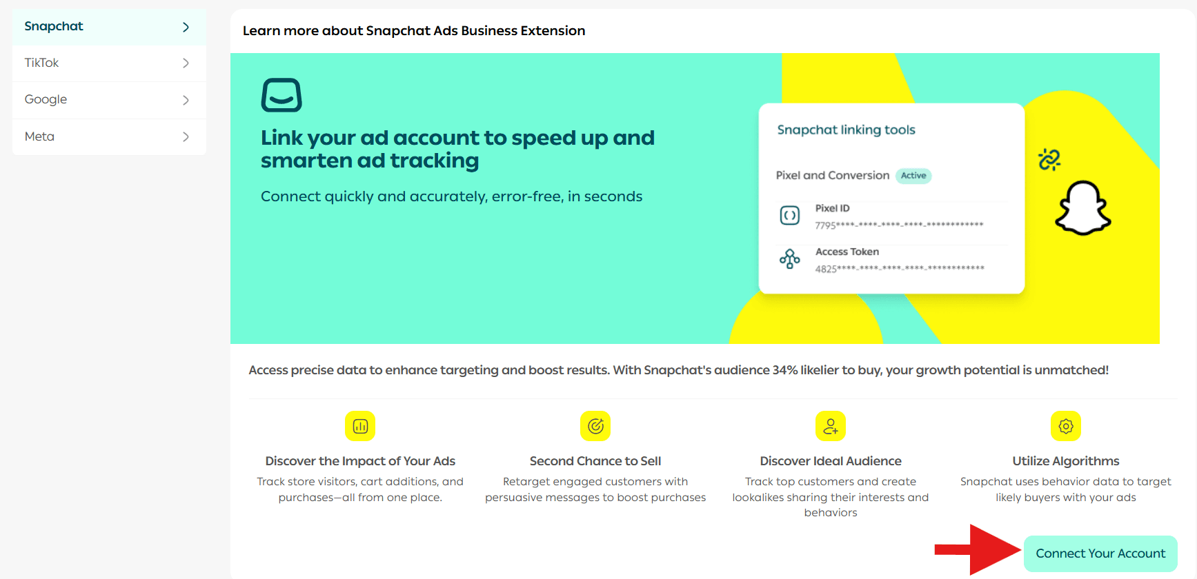 Note: If you do not have a Snapchat account, you will be guided to create one. Complete the account setup and create a pixel for the account.