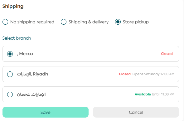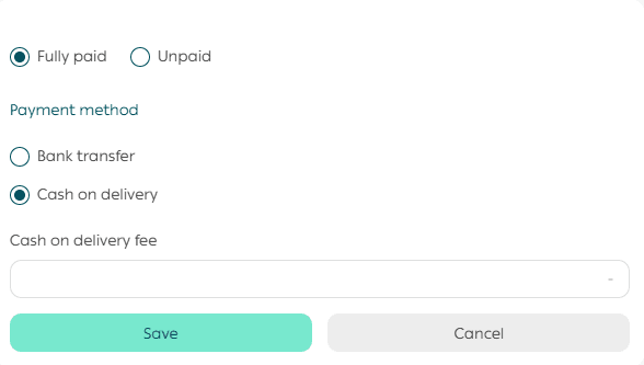 Choose whether shipping is free or paid, then select the shipping company and click Save.