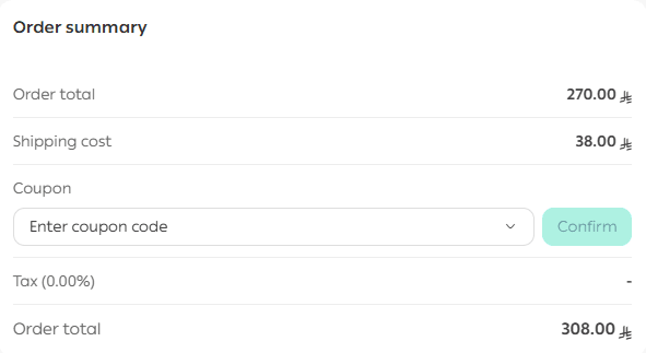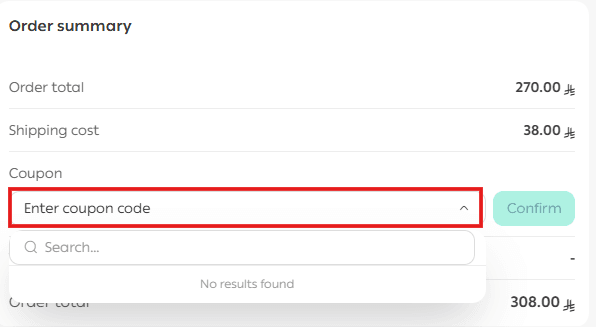 Review the order summary. To add a discount coupon, click Add Coupon.