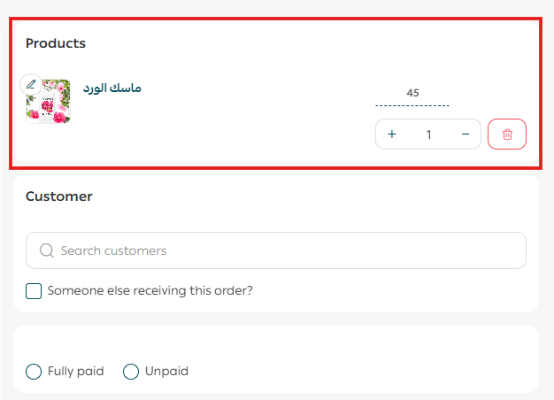 If the order is for a new customer, click Add New Customer, enter the customer details, then click Save.