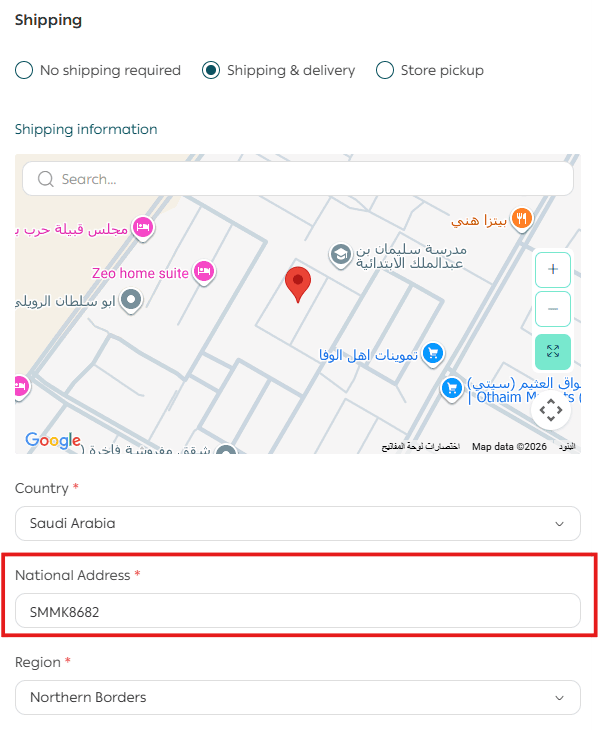 When entering the national address, matching address options will appear automatically. Once selected, all address fields are filled in based on official national data.