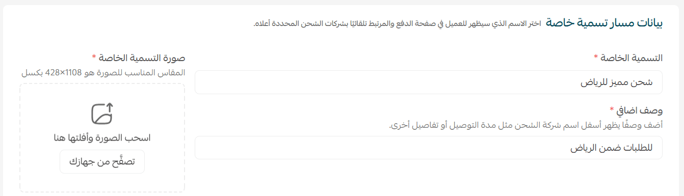 - Route name: Choose a clear internal name (not visible to customers), e.g., “Remote Areas Shipping”.