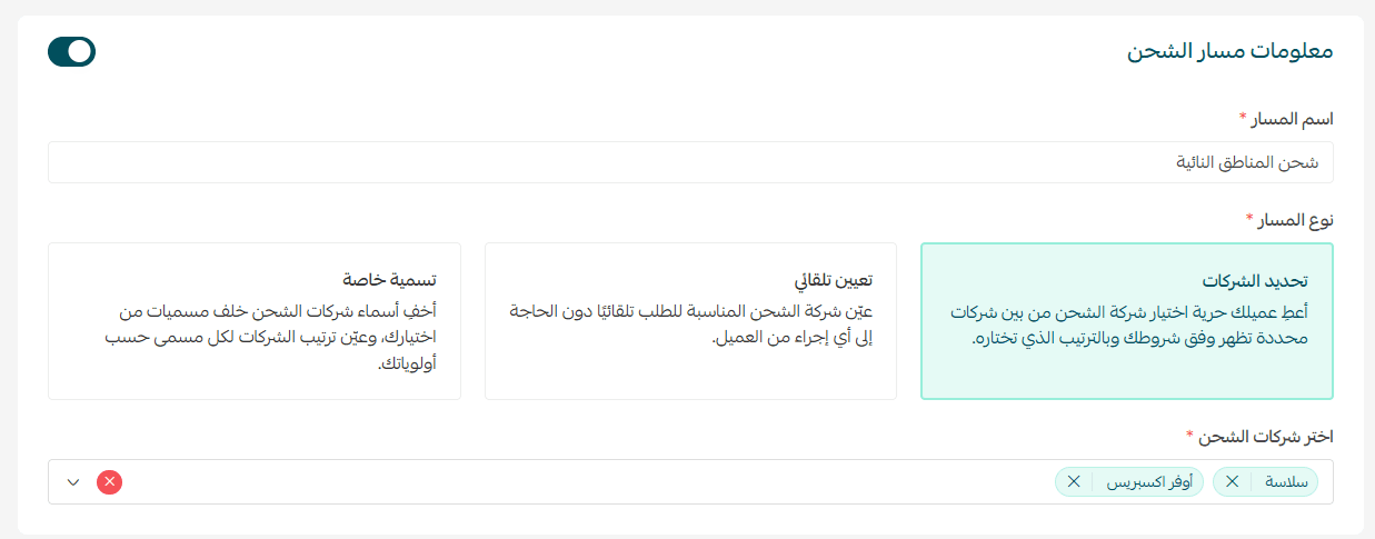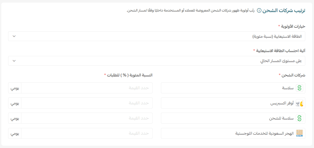 - Shipping companies: Choose which companies will appear and ترتيب them as needed.