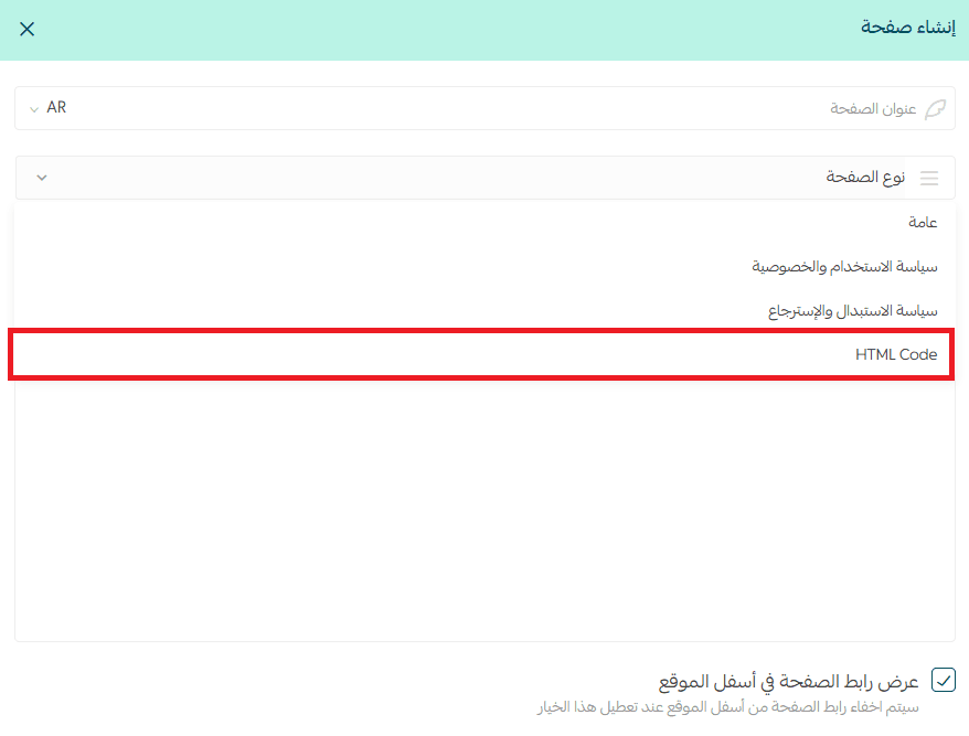 - Choose (HTML Code) as the page type