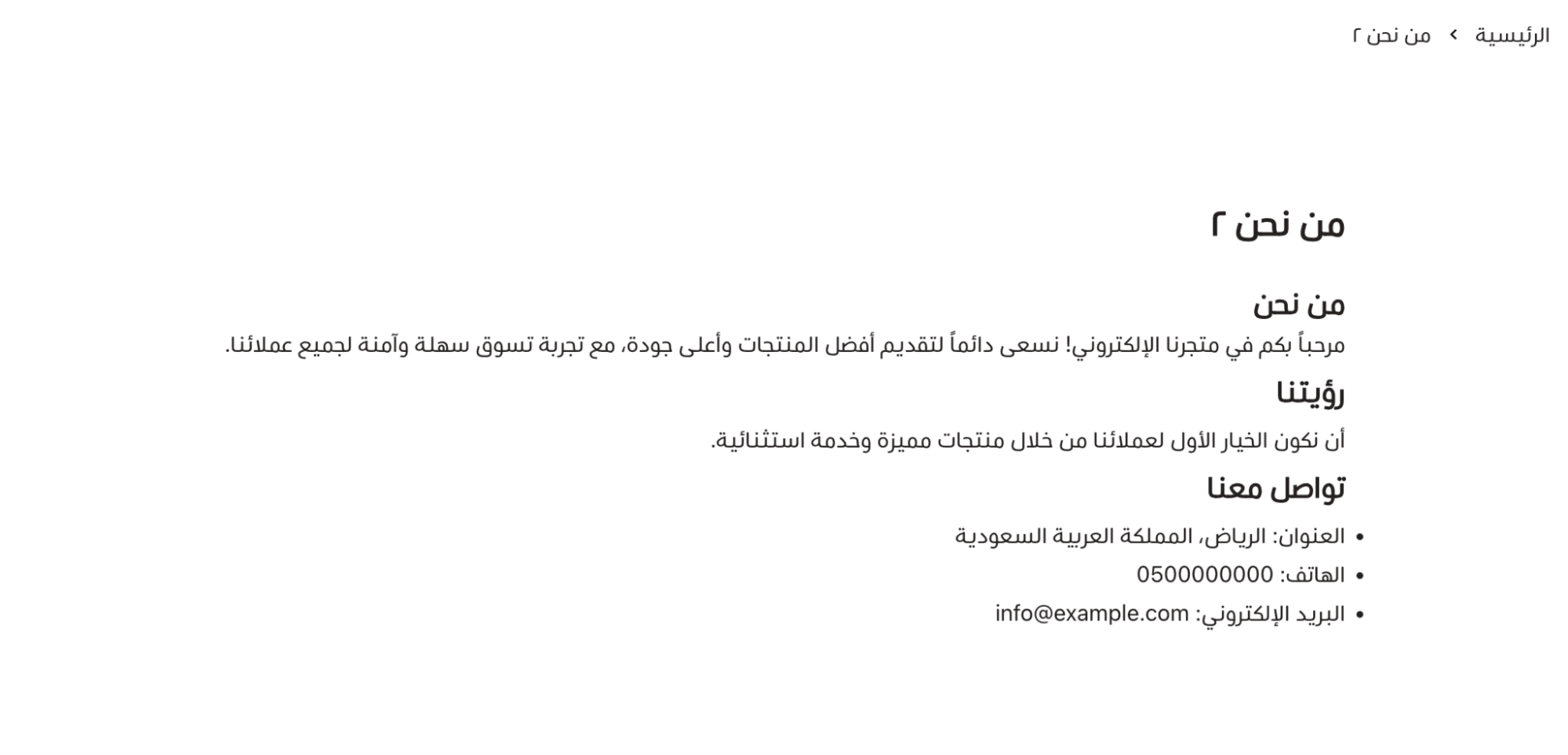 Note: For SEO improvements, the page URL is generated automatically based on the store language. It may change if you switch between languages (e.g., Arabic / English). After saving, the page will be created successfully and added to your store.