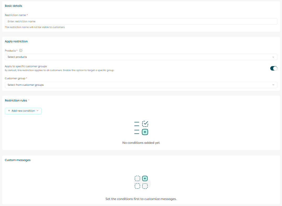The Product Restrictions feature gives you full flexibility to define purchase limits, control repeat purchases, and set time based restrictions per product. This helps you create a balanced selling experience that protects inventory, prevents misuse, and keeps customers satisfied.