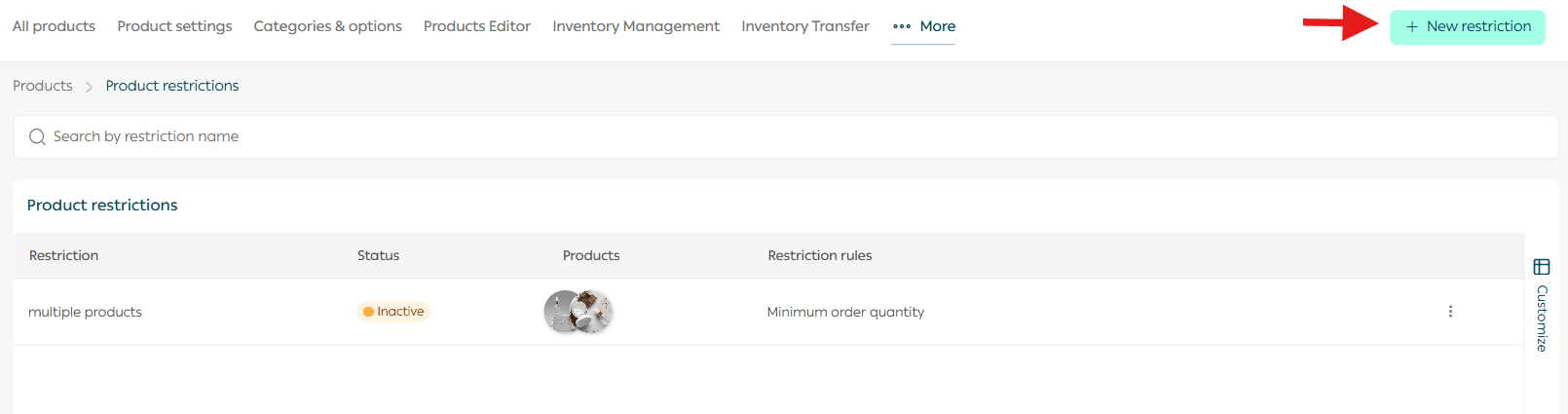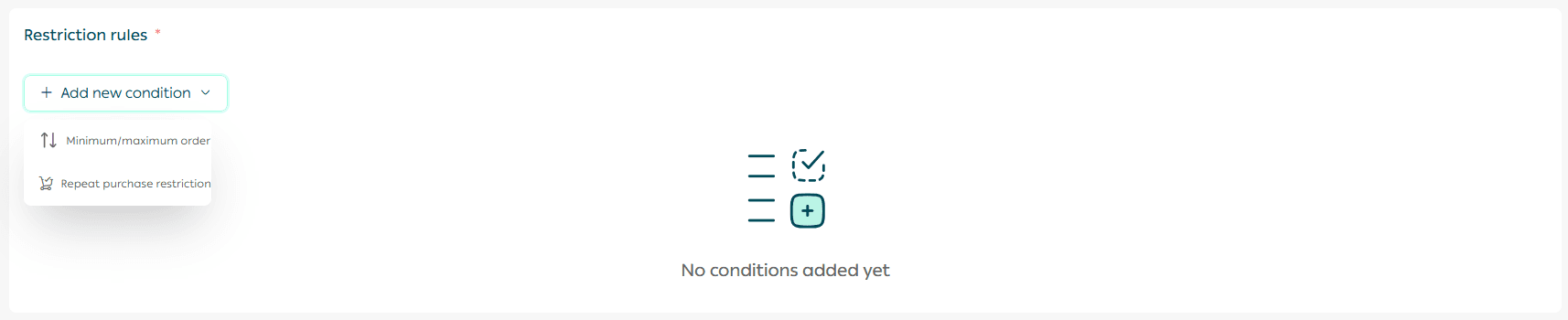 Important note: If a maximum quantity is defined both on the product page and in the restriction settings, the restriction settings take priority.